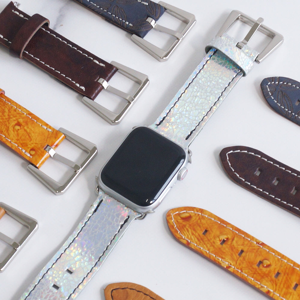 一期一会シリーズにアップルウォッチベルトが登場。本革を使用したアップルウォッチベルトは馴染みが良く、こだわる人におすすめです。1点物のため革の種類や配色、糸の色など定番の商品には無い珍しい商品ばかりです。気分やファッションに合わせて付け替えてご使用いただけるよう豊富なカラーをご用意いたしました。