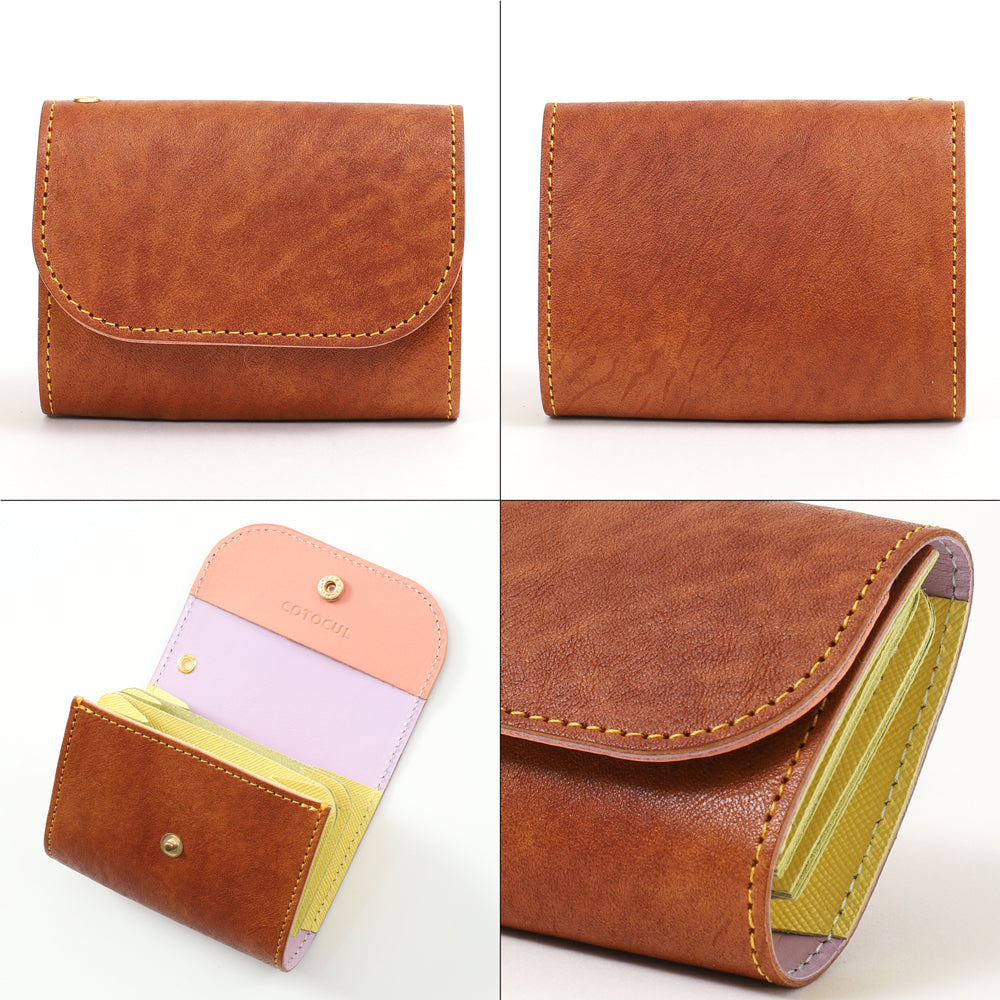 明るめのブラウンで模様もシンプルなため日常使いしやすいお財布です。