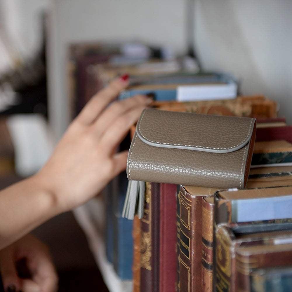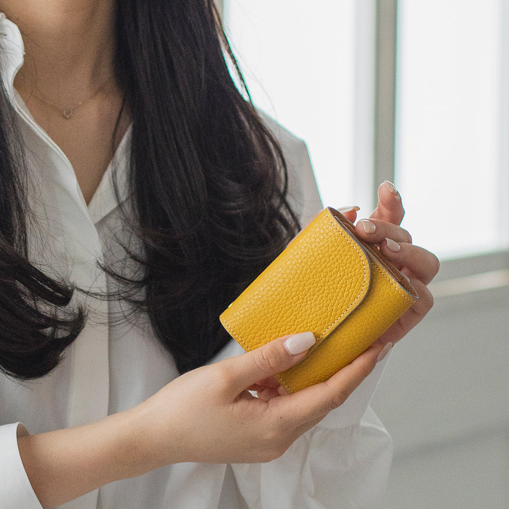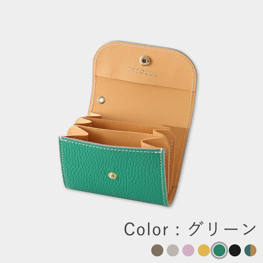 手触りのよいイタリア製の高級レザーでつくったミニ財布。発色の良さとしっとり柔らかい質感が特徴的