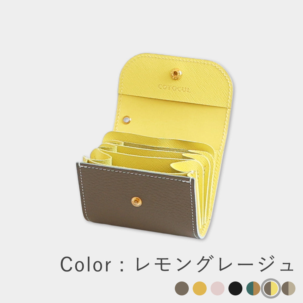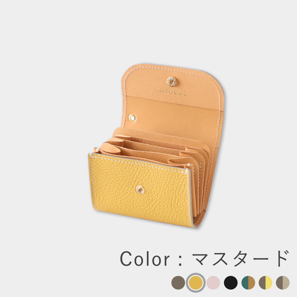 手触りのよいイタリア製の高級レザーでつくったミニ財布。発色の良さとしっとり柔らかい質感が特徴的