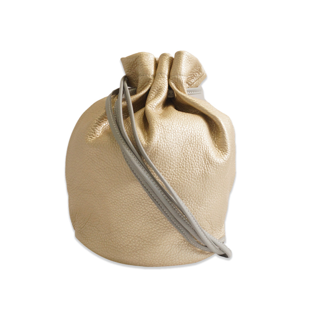 采用奢华真皮制成,质地柔软湿润。箔处理可防止剥落并产生优雅的光泽,但不会太过耀眼。欣赏这款束口袋中华丽的箔皮革。